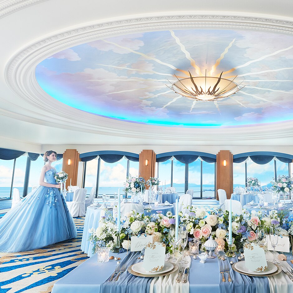 「偕楽」天井高は圧巻の7m。ホテルを代表するメインバンケットでは優美で上質な正統派ウエディングを