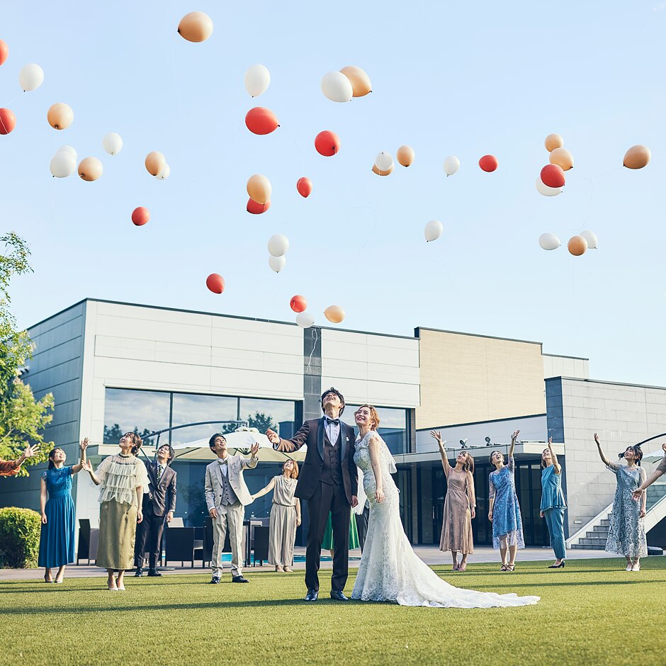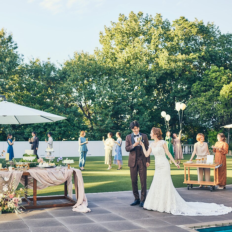 森へと続く広々としたガーデンでは、広さを活かしたアフターセレモニーのほかに、ガーデンパーティやデザートビュッフェを楽しめる。開放感いっぱいのロケーションで、誰もが笑顔になるウエディングを叶えよう!