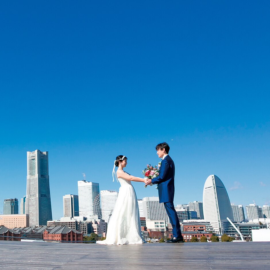 挙式当日だけでなく、前撮りから二次会まで利用OK。新作ドレスも豊富で、200着以上のラインナップからセレクト!大聖堂での撮影はもちろん、大さん橋やみなとみらいでのロケーション撮影もおすすめ!