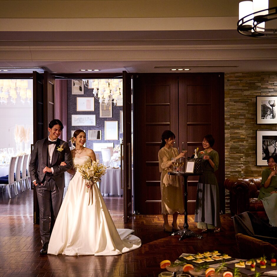 正統派な披露宴から会食スタイルなど、ふたりの好みに合わせた3つの会場を提案。隣接している広々としたラウンジは自由自在にアレンジ可能なので、待合はもちろん、パーティ中は演出の場としても使える。