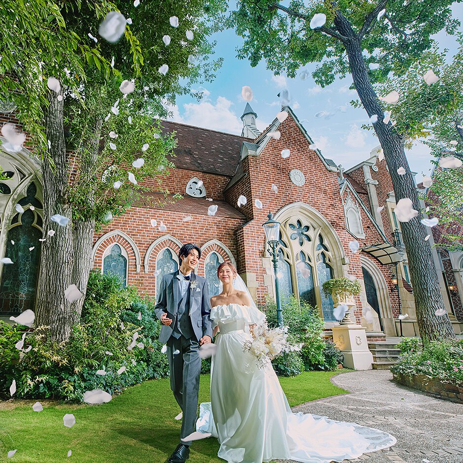 荘厳な大聖堂×ガーデン付き貸切邸宅でかけがえのない一日を叶えられる式場。雰囲気やコンセプトが気に入ったのはもちろん、スタッフの素晴らしい対応が一番の決め手に。「スタッフさんはどの方も丁寧で、人柄や対応に惹かれました。最初の見積もりも私たちの要望をもとに現実的な価格を提示していただけてよかったです」。