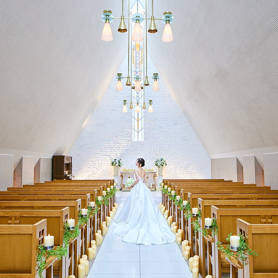 キャンドルの温かみが感じられる白亜のチャペルで感動的な挙式を… -