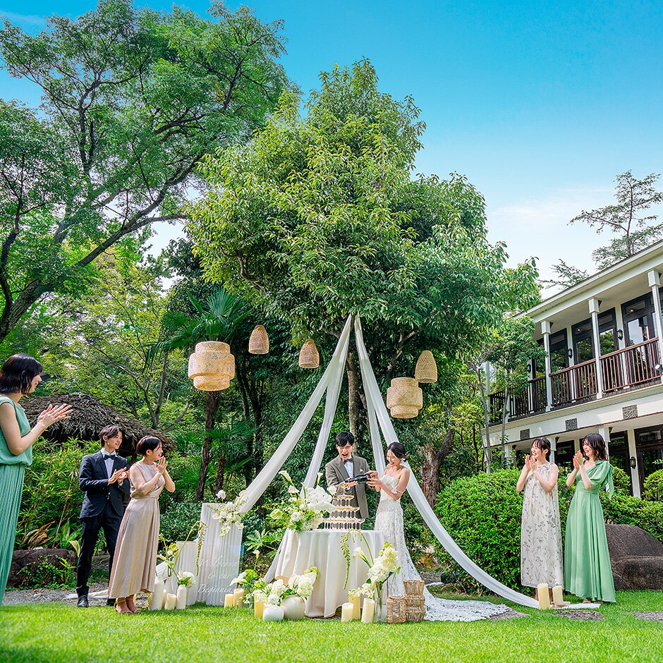 豊かな緑と自然光の祝福を受けながら、永遠の愛を誓う -