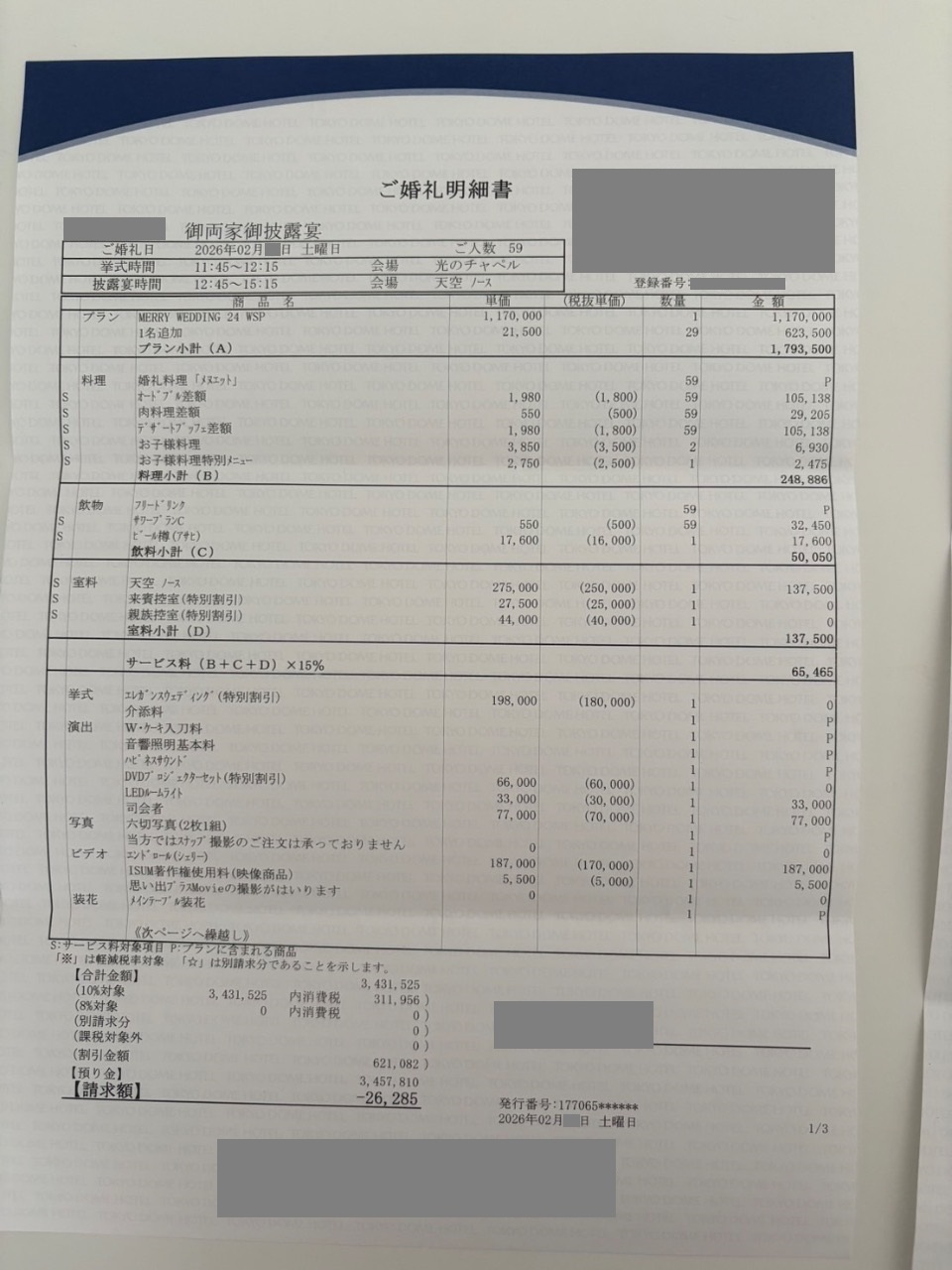 ※料金実例では申込金などを含む会場に支払った"総額"を表示しています。また、料金明細画像の項目名をもとに独自の基準で分類しています。