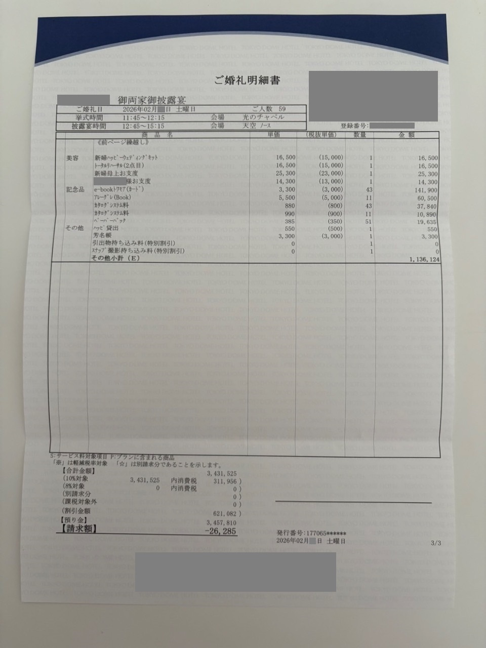 ※投稿された金額情報は、日取り、申込みのタイミングや会場の空き状況等によって異なるため、最終費用明細の項目や金額をもとにした、式場との価格交渉や追加サービス等の要望はご遠慮ください。
