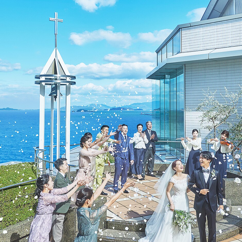 • 挙式会場(瀬戸内海を望むチャペルでの挙式シーン)