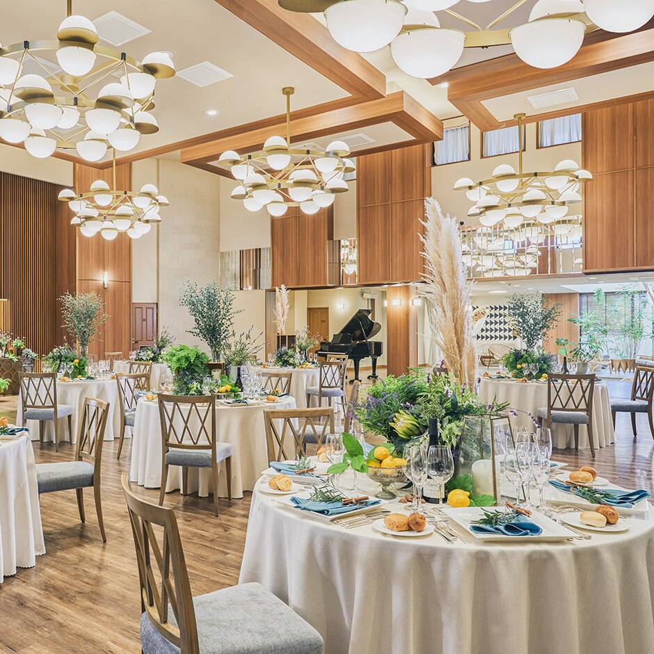 パーティ会場、ガーデンが魅力的になってオープン!浜松駅から徒歩8分のアーケード&動く歩道でスムーズなアクセスが好評で、温かく壮麗な木の大聖堂や趣異なるインドアガーデン付の貸切会場、ドレスサロンが揃う。憧れもおもてなしも妥協なしの1日を叶えて