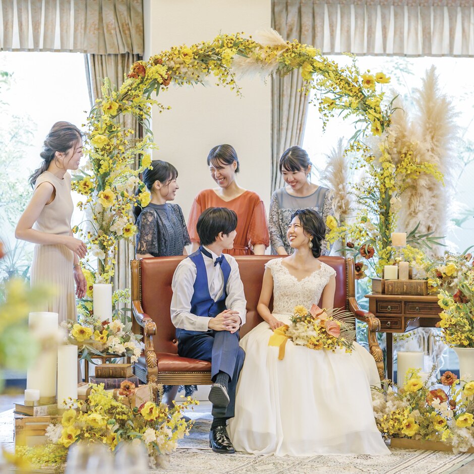 屋内にいながらガーデンパーティーの雰囲気を感じられる 貸切の空間をロマンティックに飾って
