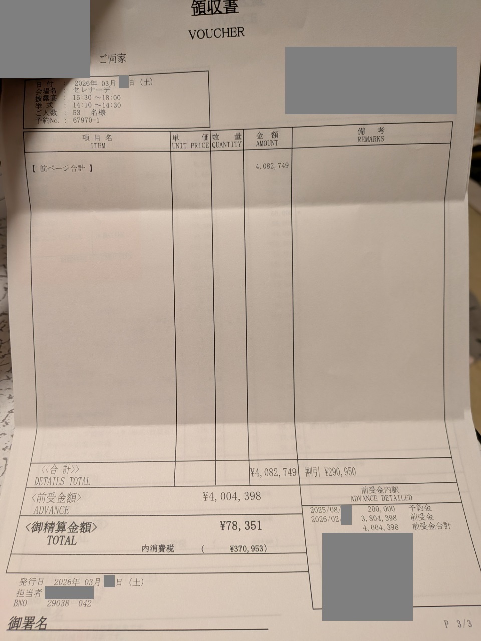 ※投稿された金額情報は、日取り、申込みのタイミングや会場の空き状況等によって異なるため、最終費用明細の項目や金額をもとにした、式場との価格交渉や追加サービス等の要望はご遠慮ください。