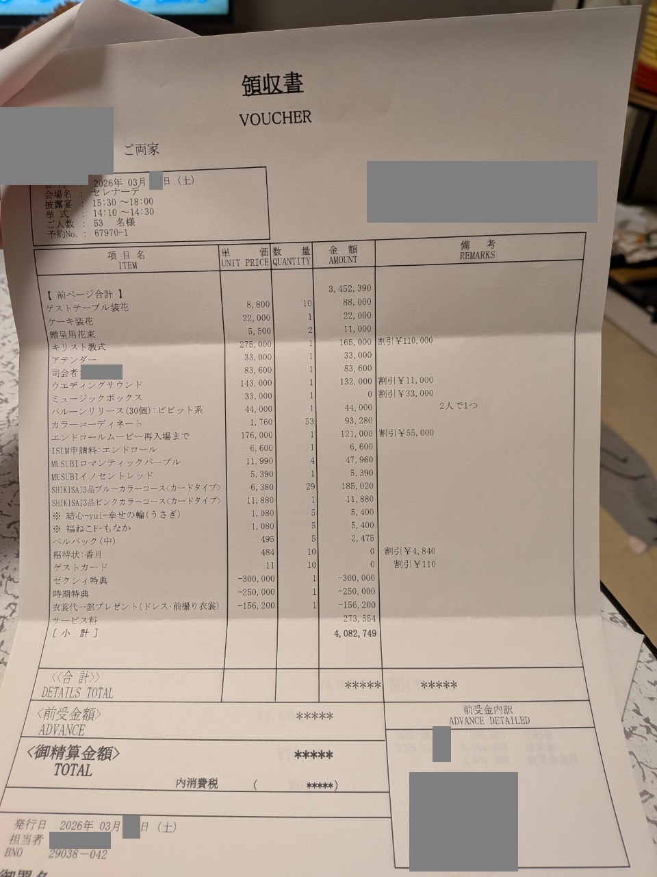 ゼクシィの特典で値引きをしていただきました