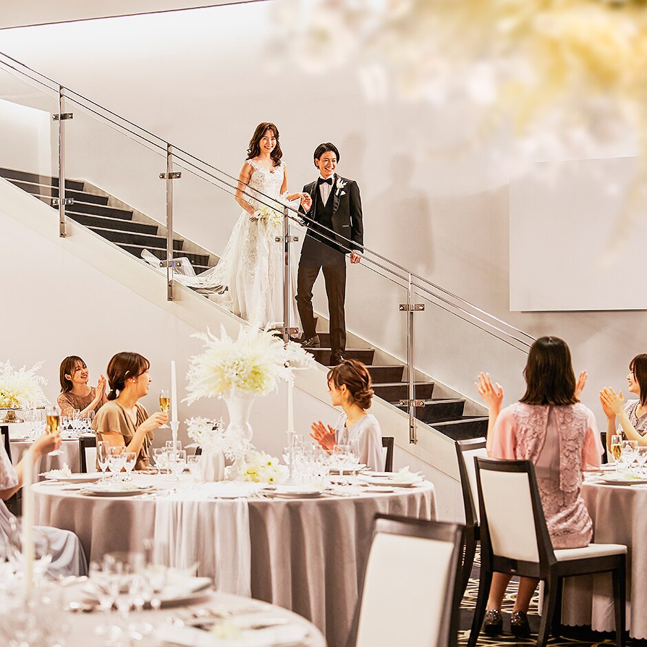 大階段からのドラマチックな入場にゲストも心に残るウェディングを -