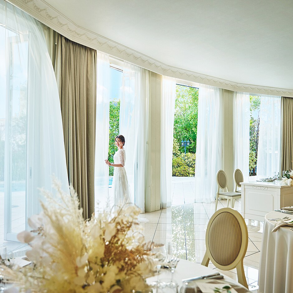 【MAURURU】2階まで吹き抜けでガーデンとも隣接した広々と開放感を感じる披露宴会場 -