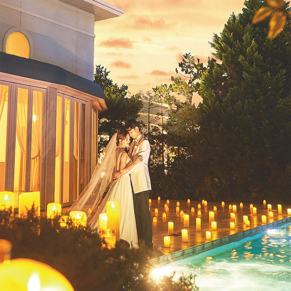 照明やキャンドルで幻想的な空間を演出 -