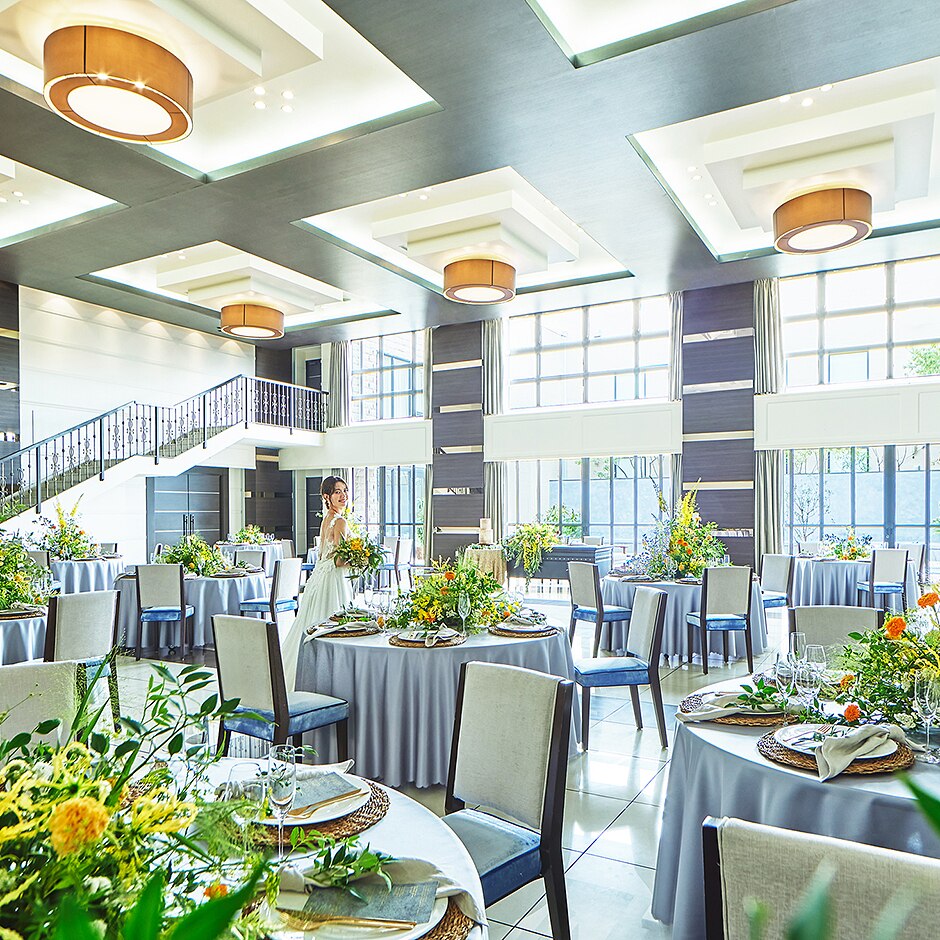 【MAURURU】2階まで吹き抜けでガーデンとも隣接した広々と開放感を感じる披露宴会場 -
