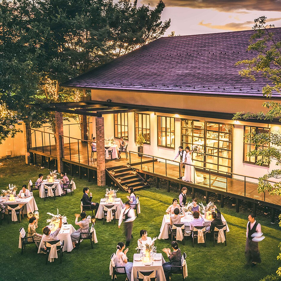 木立に囲まれて建つ納屋のような独立型一軒家邸宅。スタイルも誓いの言葉も自由だからふたりらしい挙式に。
