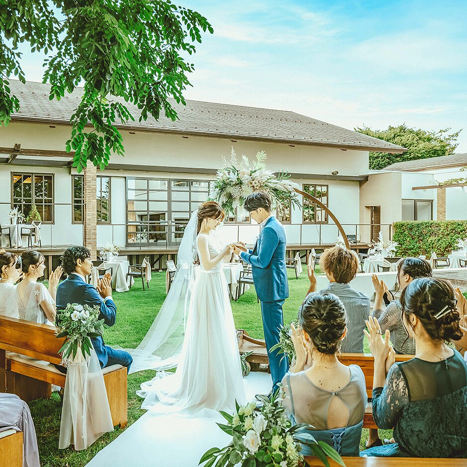 プライベートガーデンだからこそ貸切で自由に。緑たっぷりの開放的な空間でふたりらしい時間を。