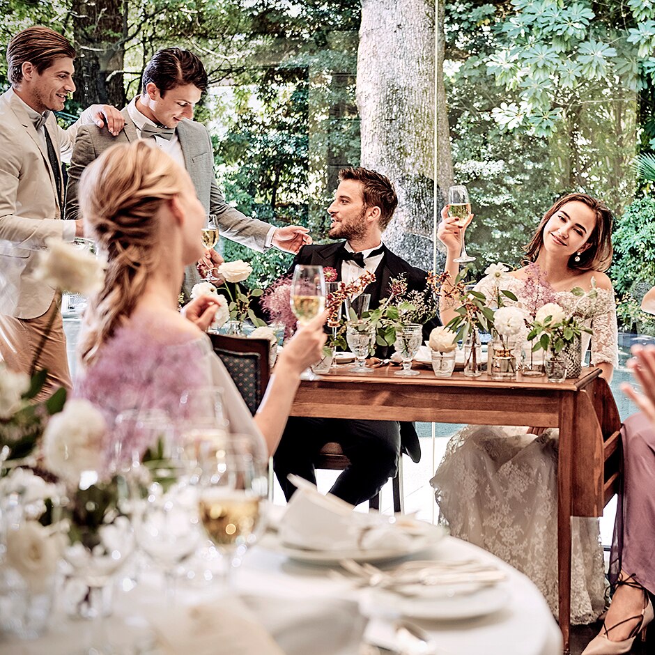 これまで数多くの家族の誕生を見守ってきた樹齢130年以上の大樹。ふたりとゲストを優しく包む木漏れ日がアットホームなひと時を演出する。等身大のセレモニーやゲストとたくさん笑いあうパーティを過ごして。