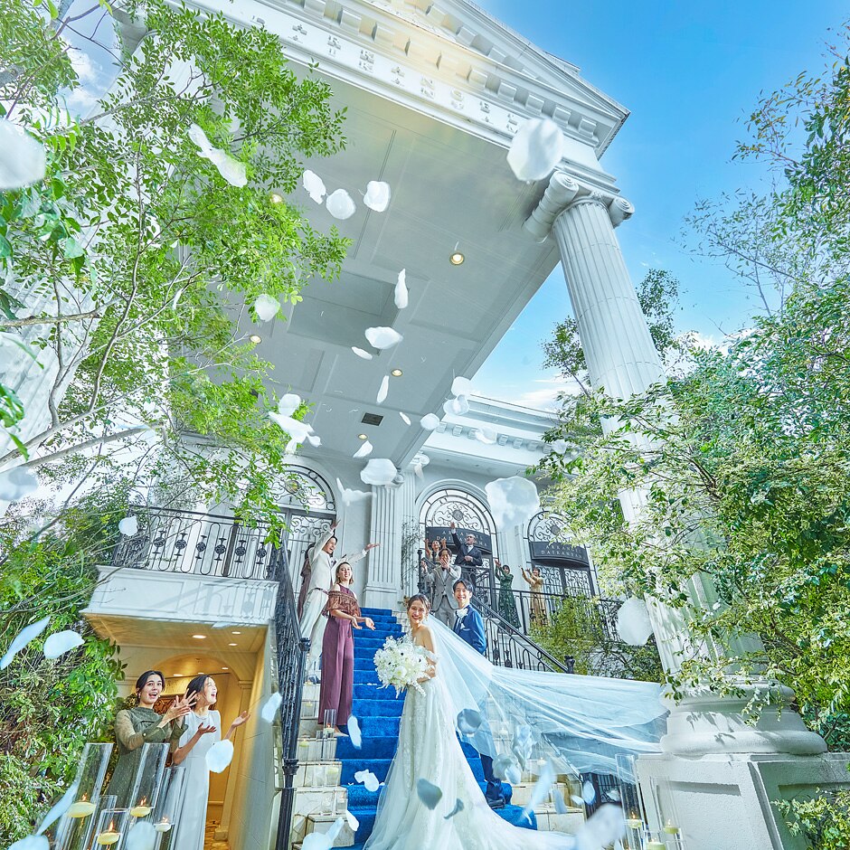 大階段でのフラワーシャワーは花嫁憧れのセレモニー