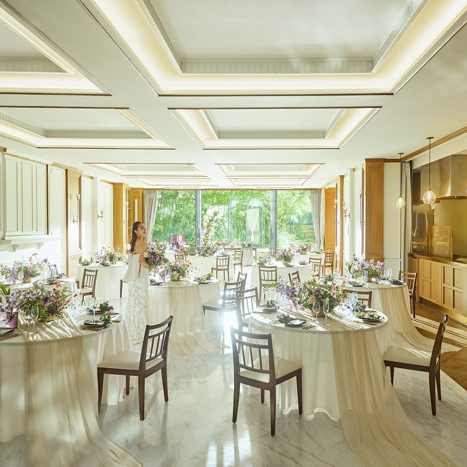 もともとガーデンウェディングを希望していたため、緑のある庭園で挙式ができるのが決めてになりました。六本木駅から徒歩ですぐの都心の好立地にありながら、都会にいることを忘れてしまうような落ち着いた雰囲気というのもとても良かったです。また、もし雨天になったとしても、今予定している人数でチャペルで挙式できるのが安心できます。リニューアルされたチャペルは、洗練されたシンプルなデザインで、天窓から入る自然光が明るく印象的でした。 披露宴会場はガーデンに面していて、ドアを開放するとたっぷりと光が入り、明るく広い印象を受ける空間なのが良いです。会場に併設されているオープンキッチンでは、シェフが料理をしている様子を目の前で見られる演出もあり、ゲストにとっても記憶に残る体験になりそうだと感じました。 スタッフの方の対応も親切で、プランナーさんが親身になって相談に乗ってくれたり、ゲストを大切にしたいという気持ちを汲んでくれてとても安心感がありました。