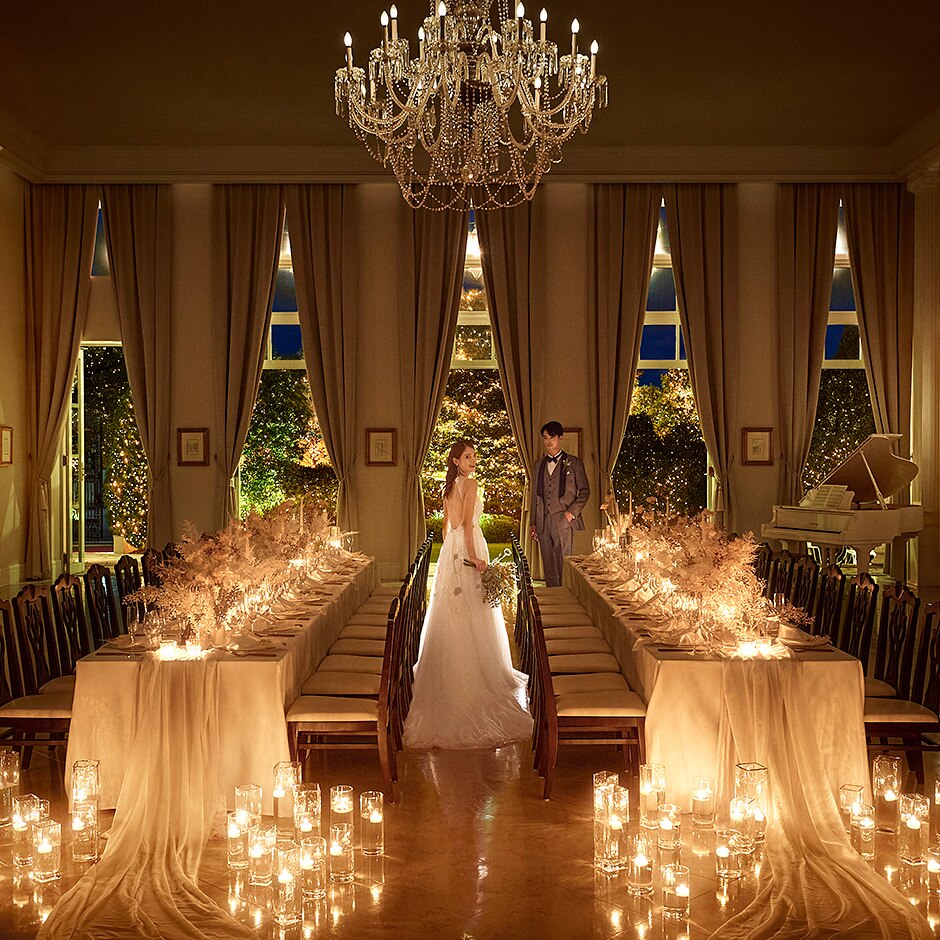 日が暮れる頃にはじまるナイトウエディングは、お酒がすすむ大人のウエディングパーティが過ごせる。