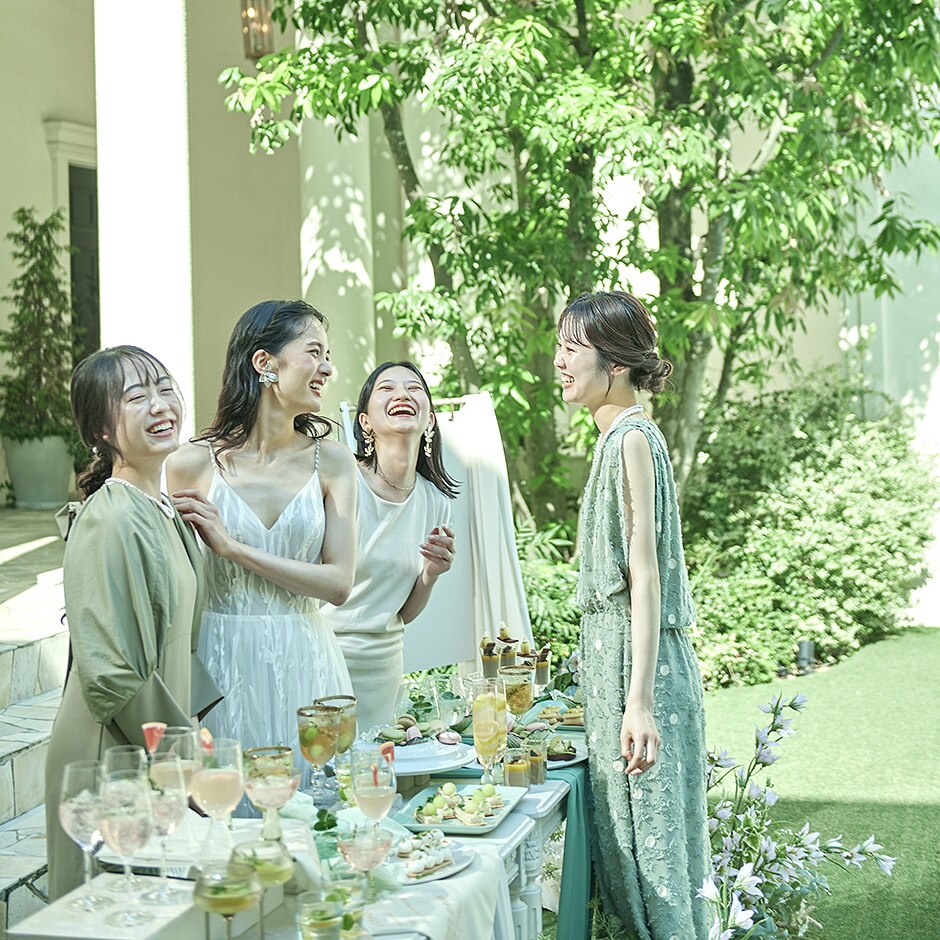 開放的なガーデンでゲストの笑顔が広がる