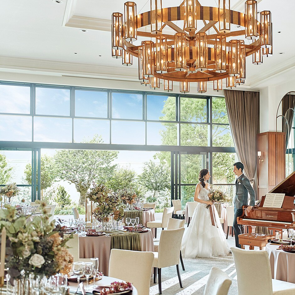 隣接するガーデンからの入場演出も人気!ピアニストによる生演奏演出も -