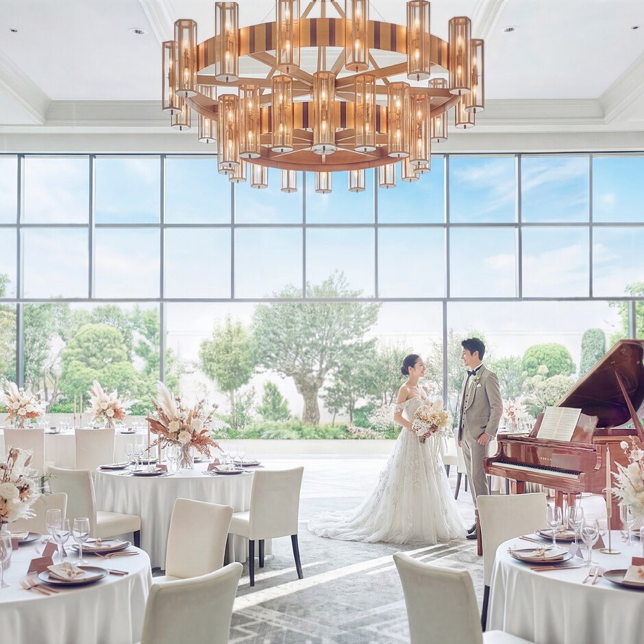 隣接するガーデンからの入場演出も人気!ピアニストによる生演奏演出も -