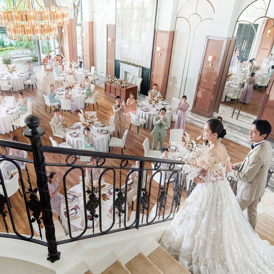 ロビー・ホワイエは調度品にあふれた上質空間だから、ふたりにもゲストにもフォトスポットとしても人気 -