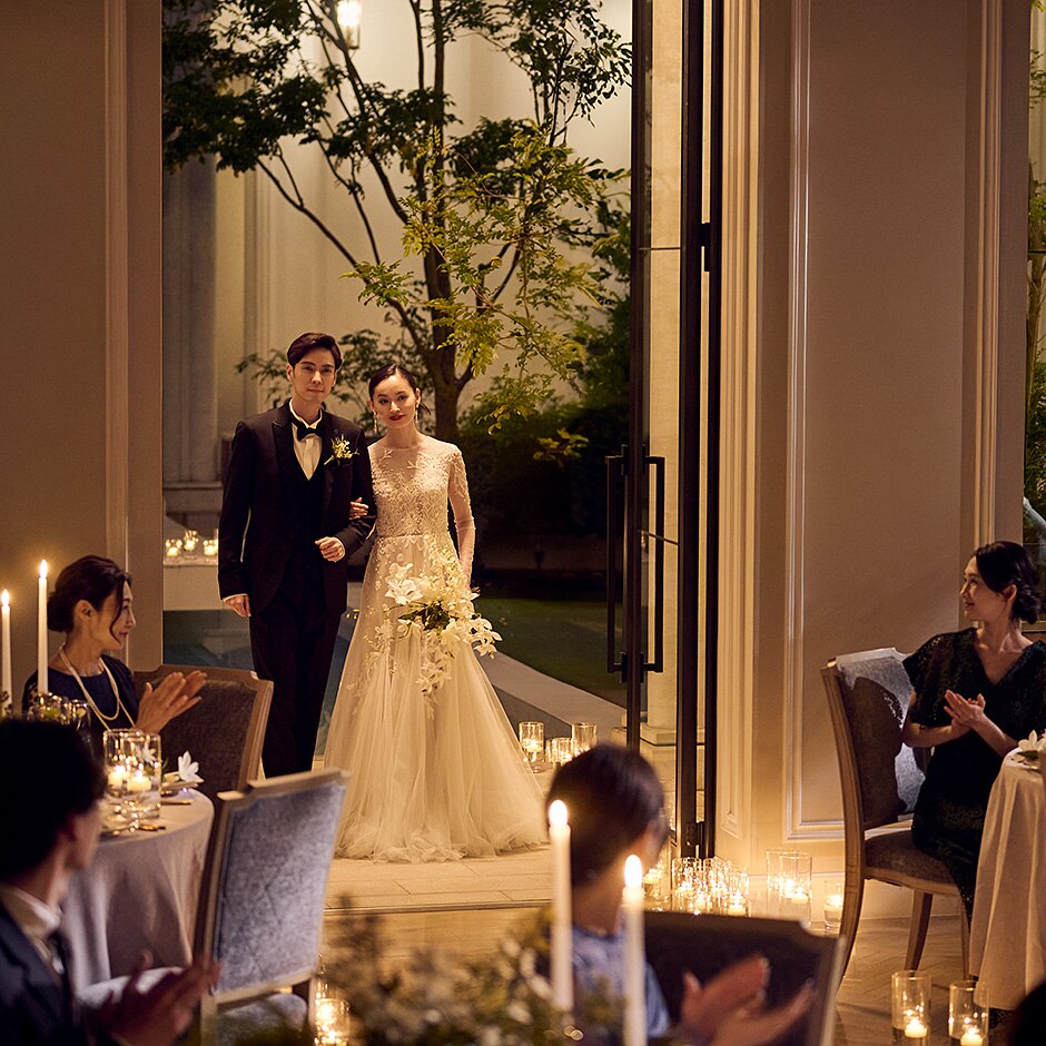 昼とは表情をかえるロマンチックなパーティも人気!二次会や二部制のパーティも叶うので、気軽に相談して。