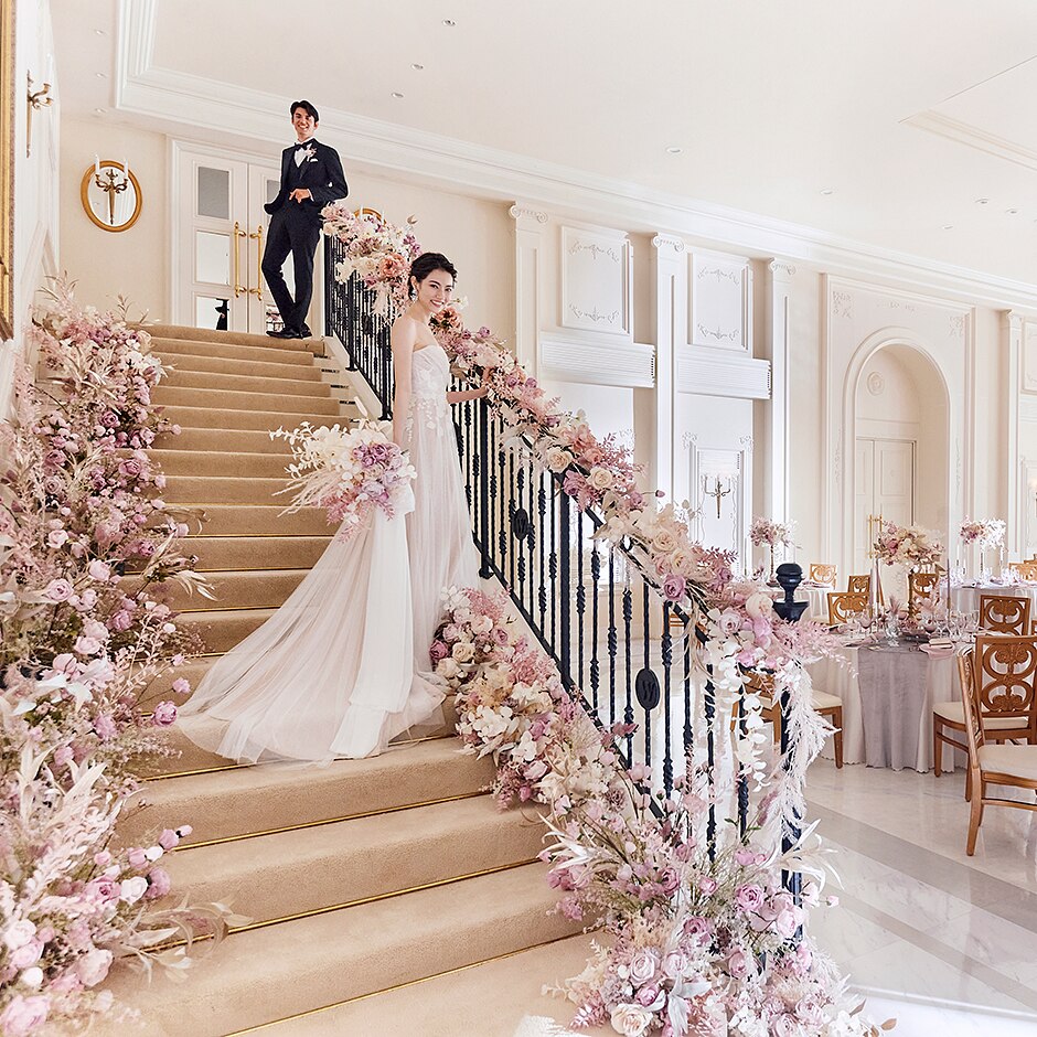 天井高7mの開放感!ゲストがうっとりするシンデレラ階段♪洗練された披露宴会場 -