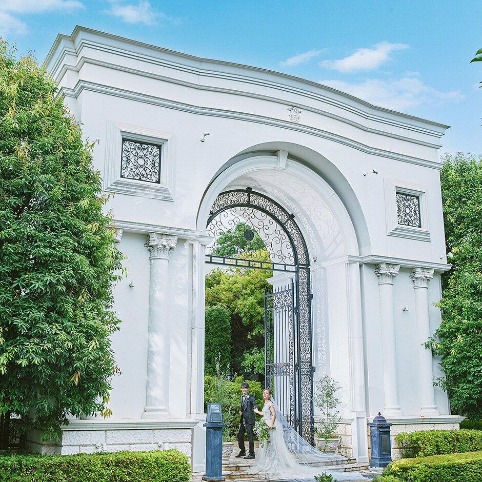 閑静な住宅街にたたずむ大きな凱旋門がこれからの結婚式へ期待を高めてくれる