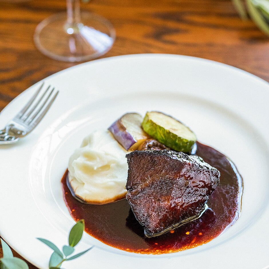 この建物が産まれた時代の「ごちそう」から着想を得て考案された「牛ホホ肉のワイン煮込み」 -