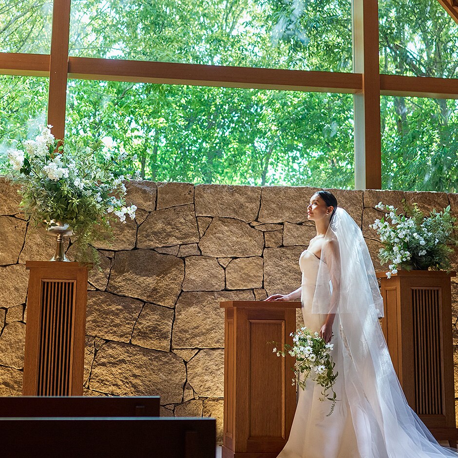 前撮りなしでも当日貸切だからゆっくりお写真を楽しめる!陽光が差し込む緑が溢れるチャペル -