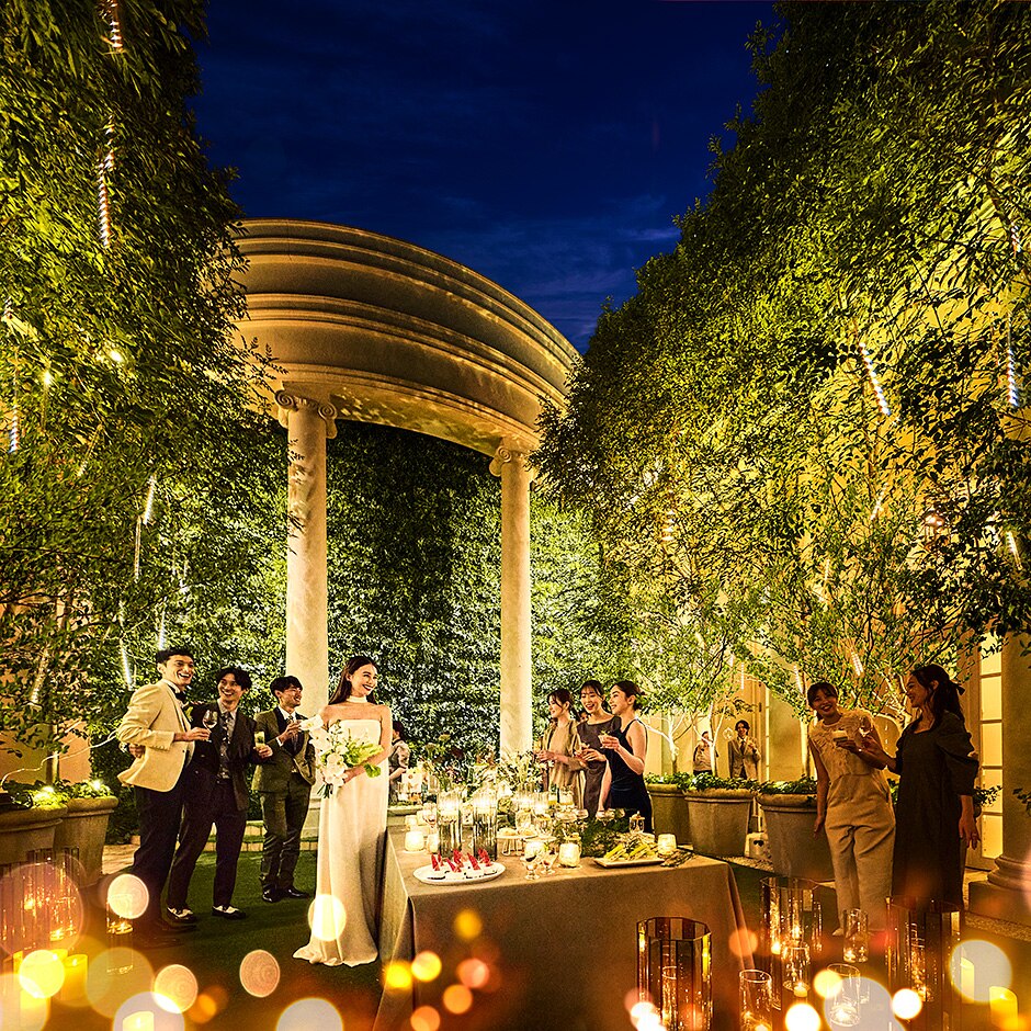 夜だからこそ映える演出や装飾でラグジュアリーな時間を。心地よい夜風を感じ、優雅なパーティを叶えよう。