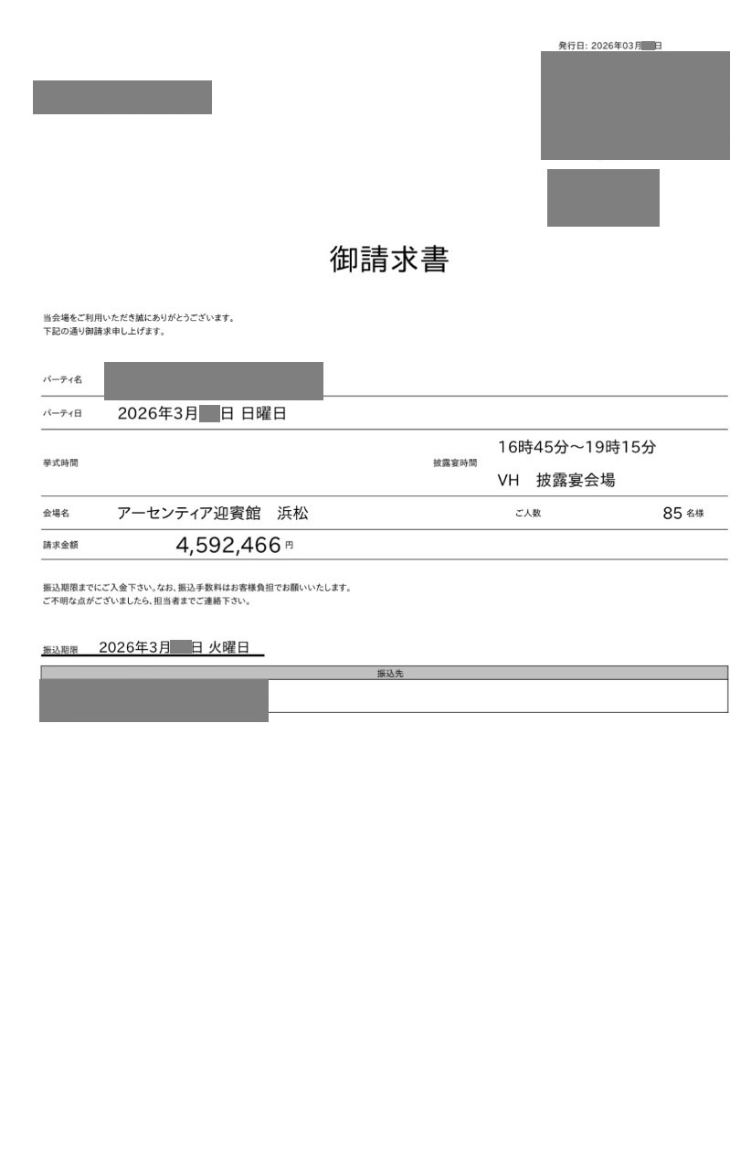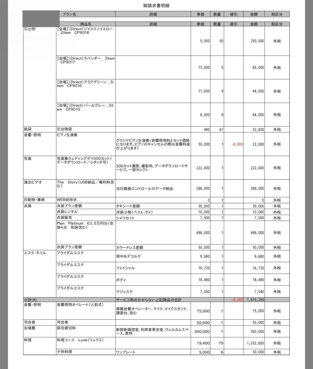 ※料金実例では申込金などを含む会場に支払った"総額"を表示しています。また、料金明細画像の項目名をもとに独自の基準で分類しています。