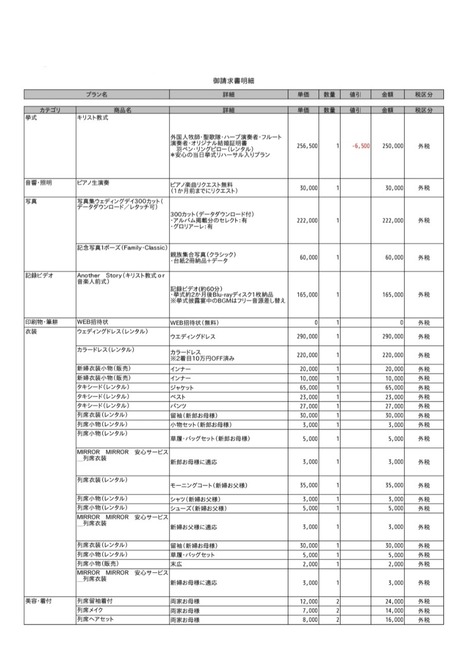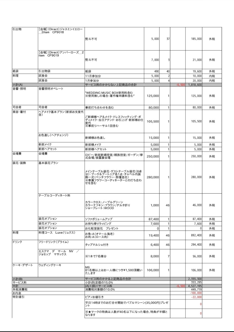 ※投稿された金額情報は、日取り、申込みのタイミングや会場の空き状況等によって異なるため、最終費用明細の項目や金額をもとにした、式場との価格交渉や追加サービス等の要望はご遠慮ください。