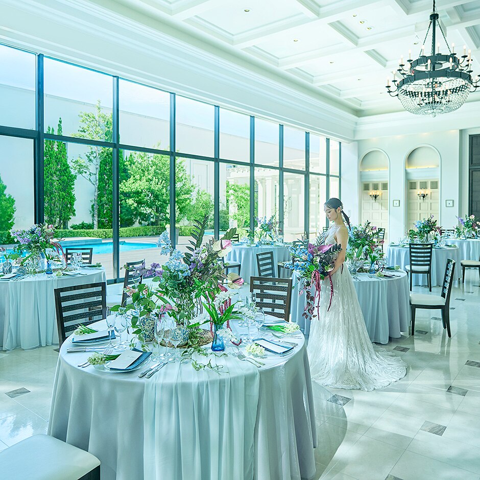 上品で落ち着いた印象ながらも自然に心癒されるパーティ会場で、ふたりらしいおもてなしを叶えて。