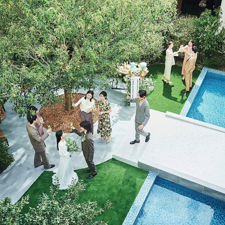 都心にいながら非日常感を感じられるプール付きガーデンが魅力的 -