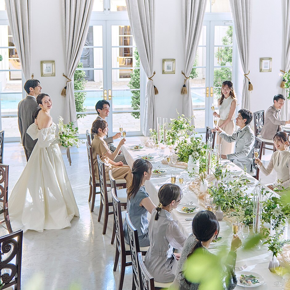 白と緑のコントラストが美しい舞台で叶えるふたりならではの挙式