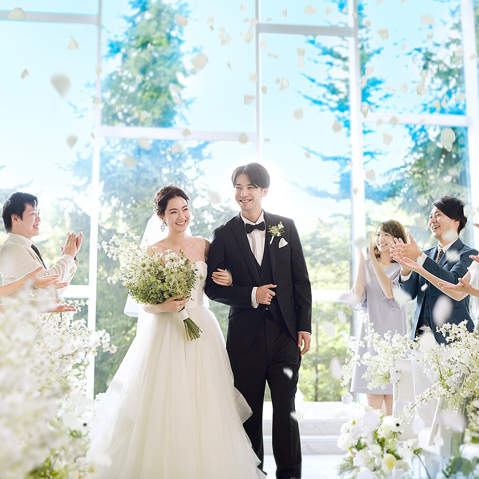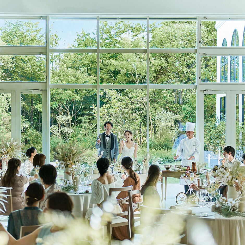 緑豊かな自然と光が差し込む景色は札幌唯一のリゾートチャペル。開放感に溢れリラックスした時間と共に -