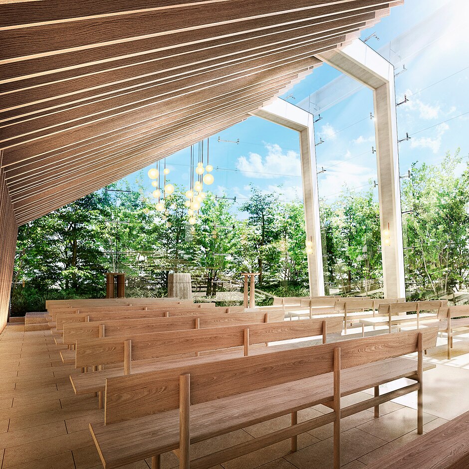 表参道の空を眺められるチャペルは、非日常を演出したいふたりにおすすめの美空間※完成予想図