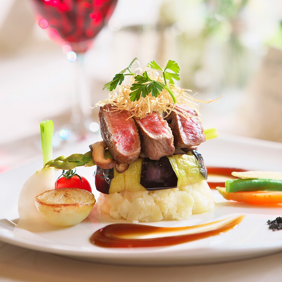 ジュレのお料理は、和風の優しい味付けとフレンチを融合させた「創作和風フレンチ」をご用意しております。お箸をご使用いただきお召し上がりいただいております。フルチョイス式ですので、1400通り以上の組み合わせが可能でございます。