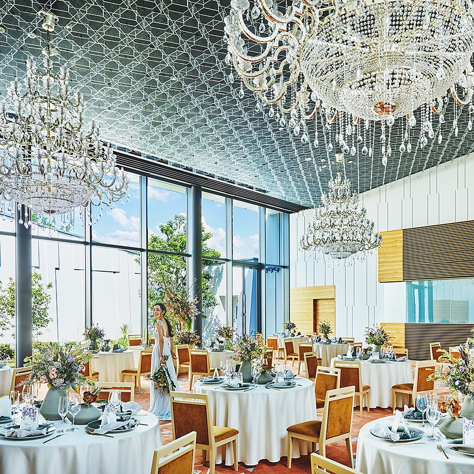 ガラス張りの透明感溢れる空間が花嫁をより一層美しく魅せる