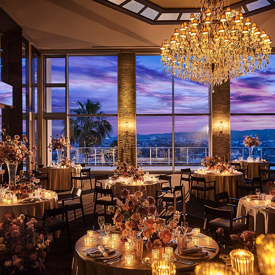 シャンデリアが美しい洗練された会場「クリスタルスカイ」で夕刻からナイトへと変わる景色を堪能
