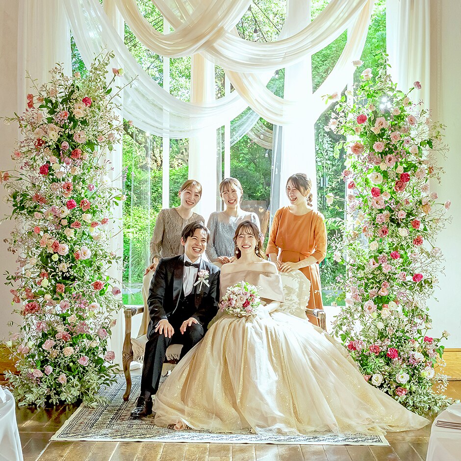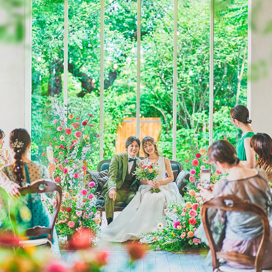 鮮やかな自然美が彩る空間に純白ドレスが広がる印象的な一日を