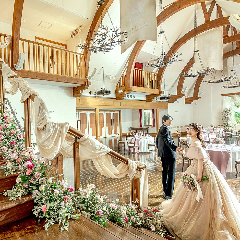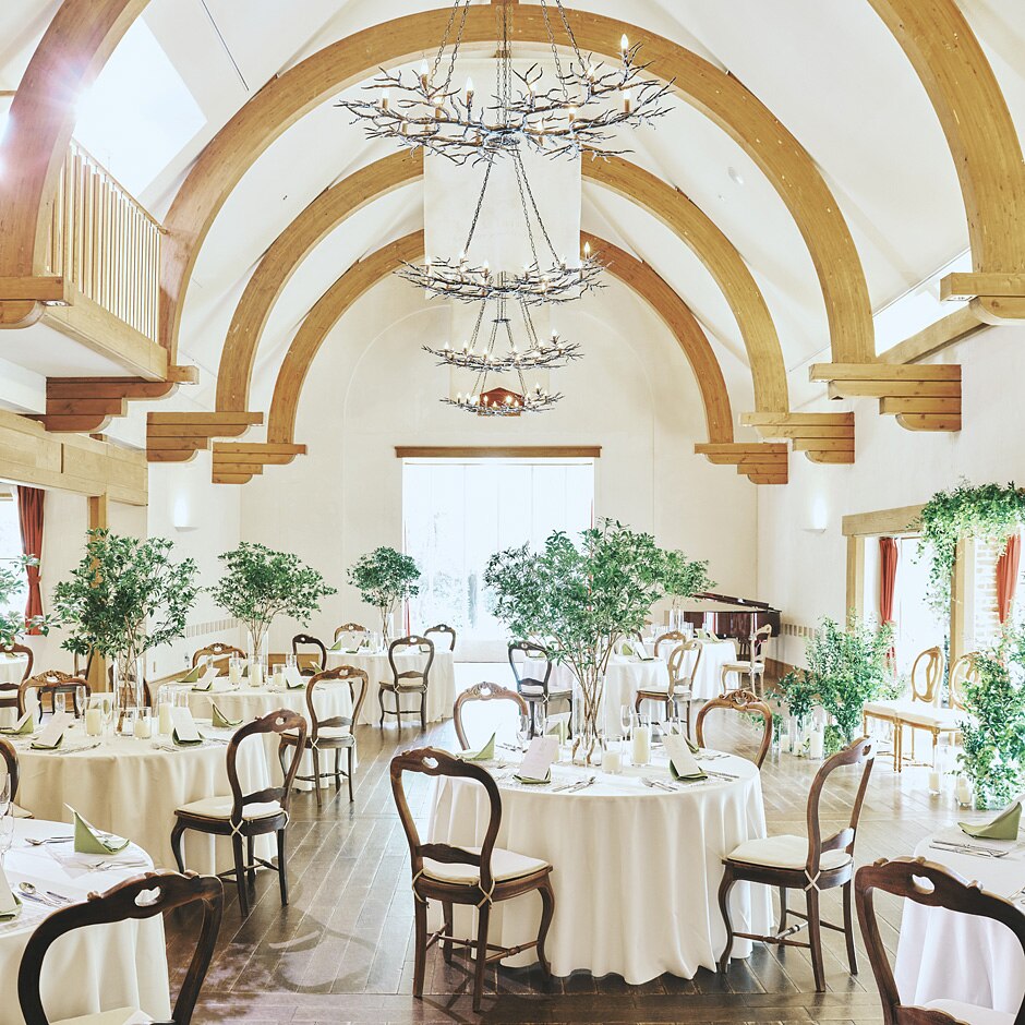 自然に囲まれて過ごす木のぬくもり溢れる空間で大切なゲストと過ごす披露宴会場