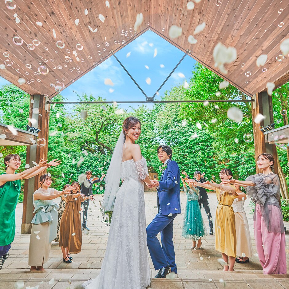 誓いの後は、美しい自然の中で思いきりアフターセレモニー演出を楽しもう!最高の笑顔で写真も残して