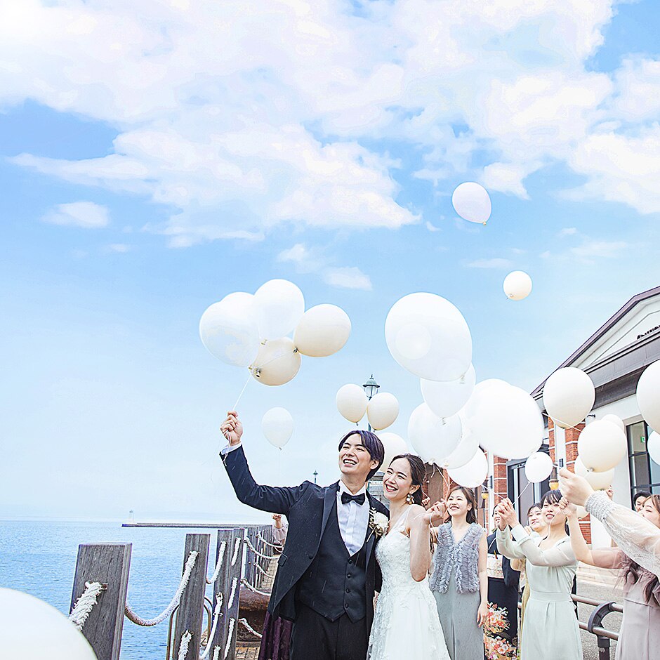 まるごと貸切だから演出も自由自在。海沿いのロケーションを活かした大空へのバルーンリリースや夜空に咲く打ち上げ花火は、ハレの日を鮮やかに彩ってくれる。ここでしか叶わない時間をゲストと一緒に楽しんで