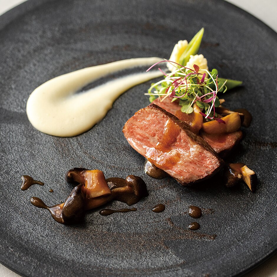 素材選び、調理法、盛付けの一つひとつにこだわった美食。一番おいしい状態でテーブルに届けられるこだわりのメニューを「ゲストにふるまいたい」と料理で決めるふたりも。シェフに直接メニューの相談もできる