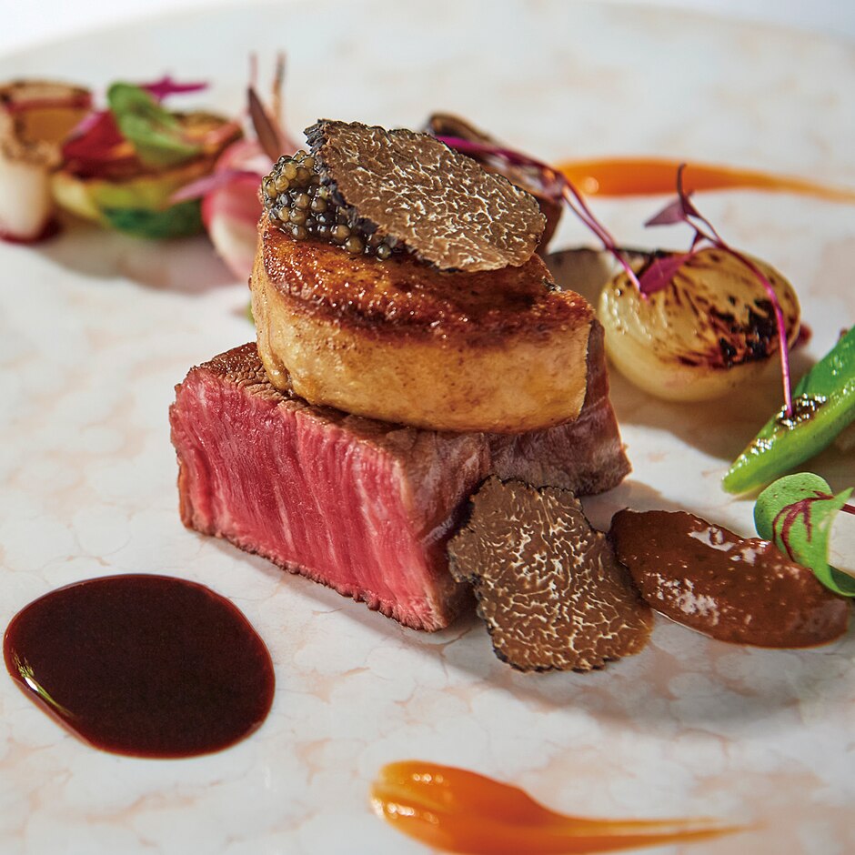 選び抜かれた旬の食材と、その持ち味を最大限に生かした調理法で仕上げた、芸術品ともいえる料理の数々五感で楽しむ新感覚料理は見た目・香り・味に至るまでフレンチに和の要素が絶妙なバランスで融合されている
